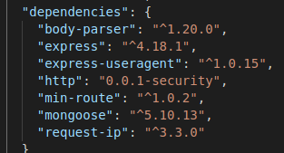 >>>npm i express body-parser http min-route request-ip express-useragent mongoose