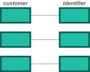 Ex: one customer has only one identifier and one identifier belongs to only one customer