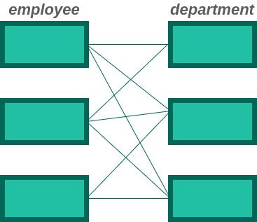 Ex: one employee can opt more than one department similarly one department can be opted by many employees.