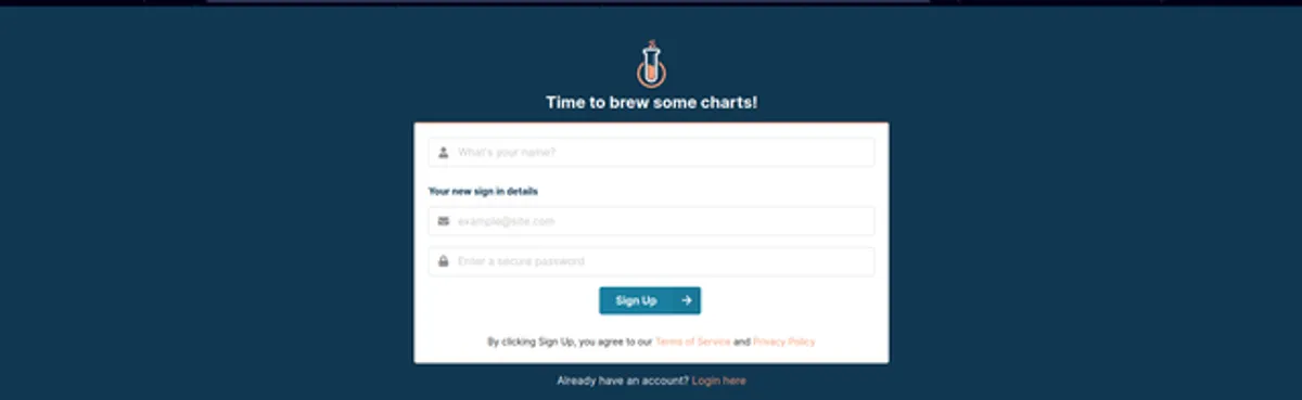 Now that ChartBrew is up and running, create an account by opening the sign up page.