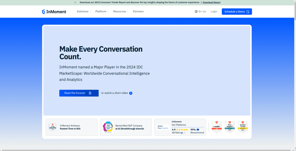 Customer feedback is the main focus of InMoment. It facilitates the collection and analysis of client sentiment by SaaS enterprises.