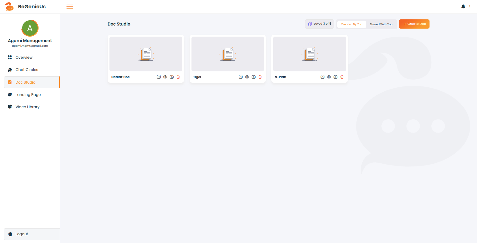 Doc Studio, another cornerstone of BeGenieUs, takes the lead in transforming how we generate documents. Beyond conventional document creation tools, BeGenieUs allows users to collaborate in Chat Circles, source content from various channels, and seamlessly generate polished PDFs. This not only streamlines the document creation process but also opens avenues for innovative approaches such as lead magnets and eBooks.