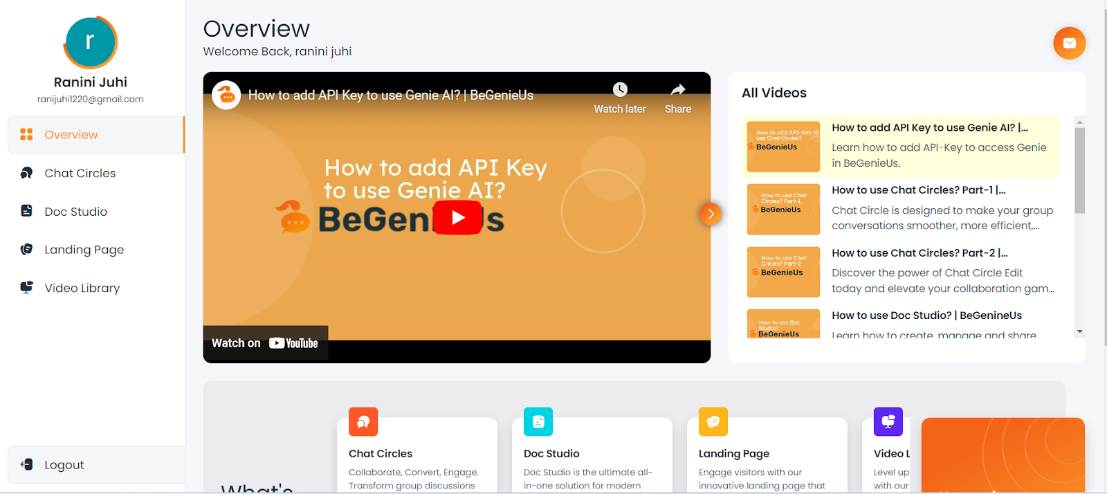 The Overview module serves as your initial point of contact with BeGenieUs, offering a wealth of tutorial videos that demystify the platform. It provides a high-level overview of each module's functionalities and acts as a gateway for submitting queries, facilitating interaction and collaboration.