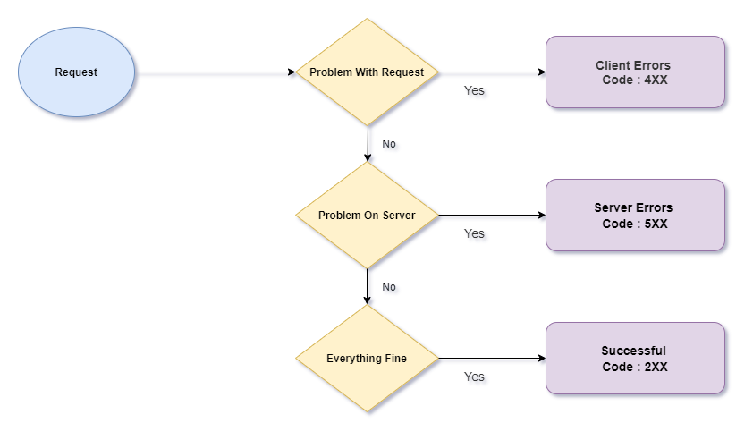 When a response is sent back to the client, It consists of a status code . Status code is usually 200(OK) if there is no error. Different status codes are used in different cases . Such as 404(Not Found),400(Bad Request),401(Unauthorized) etc.