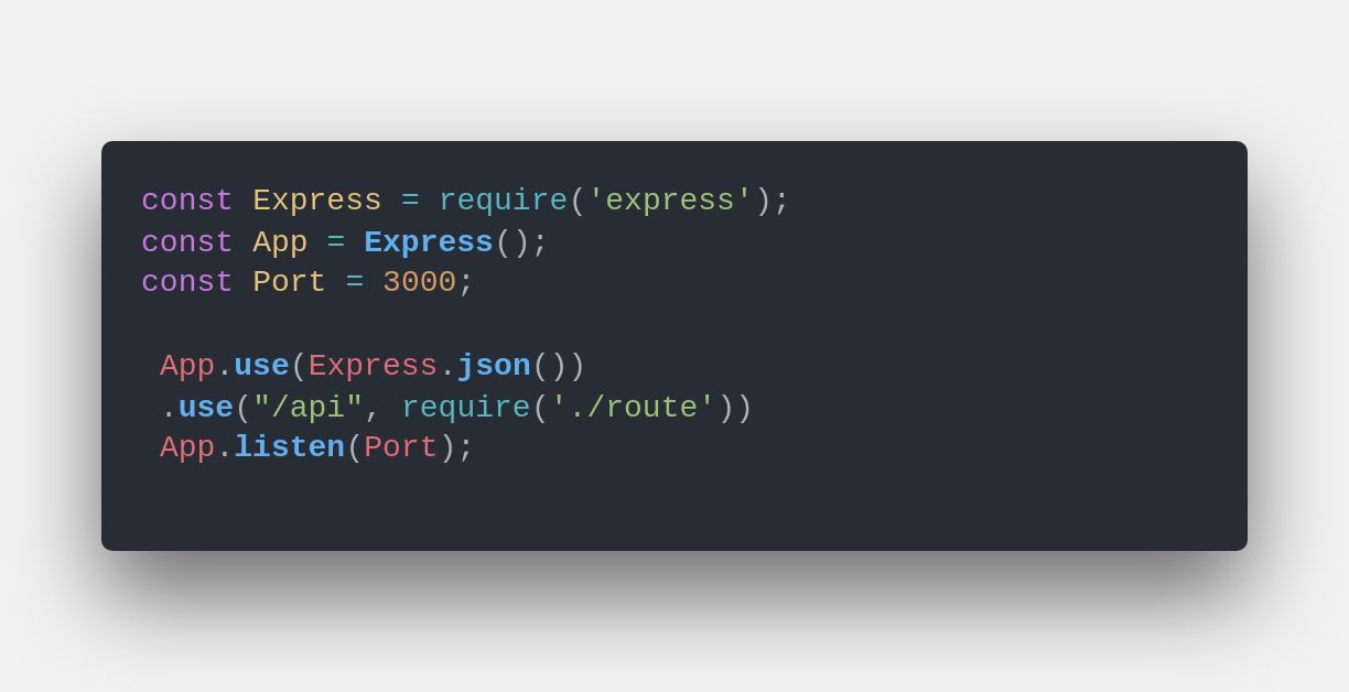 Initially, index.js is loaded. The index.js will route all the incoming routes with /api to route.js.
