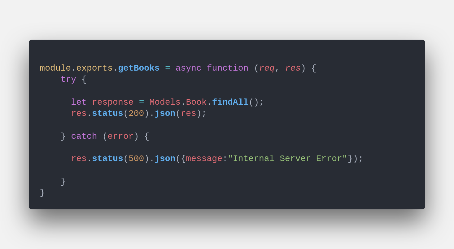 findAll will fetch all the books from the database and send back the response to the client in JSON format.