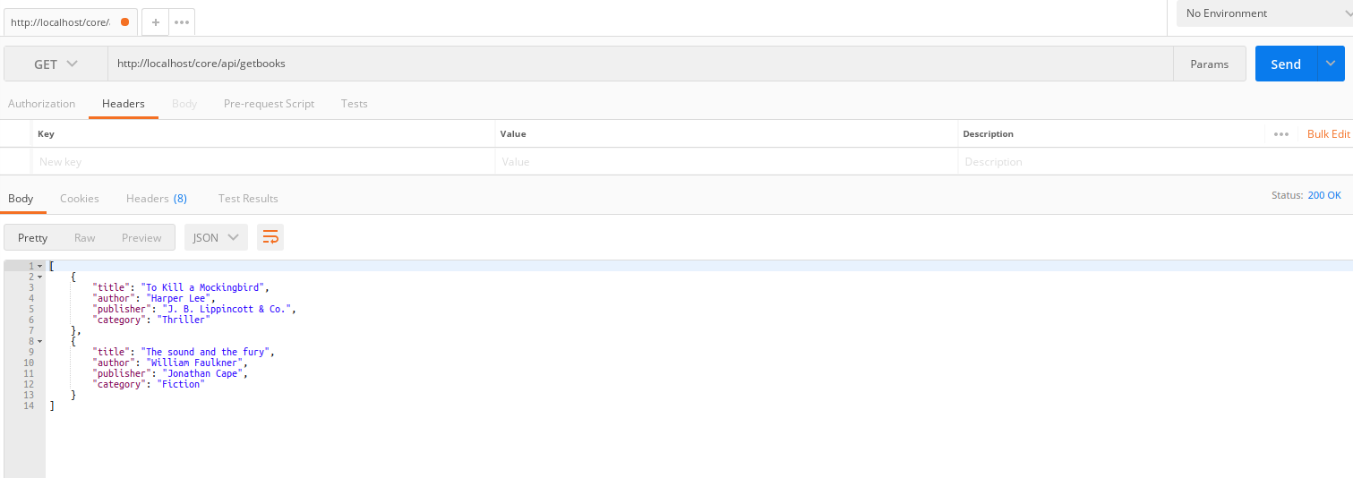 Once we click the send button to execute the API call the server fetch all the books and respond back with the data in json format with status code 200.
