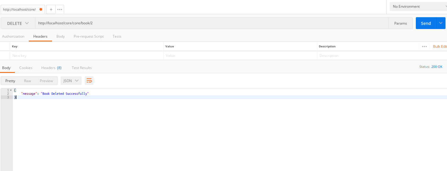 Suppose we want to delete the book having ID 2. So in params we pass the ID i.e 2.